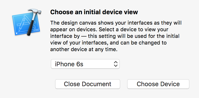 但是 Xcode8 打开之前旧项目的 XIB或SB 文件时,会弹出下面的弹框, 这时候一般直接选择Choose Device即可。